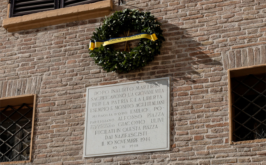 La lapide, che ricorda Emilio Po, partigiano artificiere della 65° brigata Gap Walter Tabacchi di Modena, Alfonso Piazza, pilota dell'aeronautica che dopo l'8 settembre 1943 decise di non combattere a fianco dei tedeschi e della Repubblica sociale italiana, Giacomo Ulivi, studente universitario di Parma che a Modena aveva trovato rifugio e continuava a distribuire stampa clandestina, fu inaugurata il 10 novembre 1948, nel quarto anniversario della fucilazione.