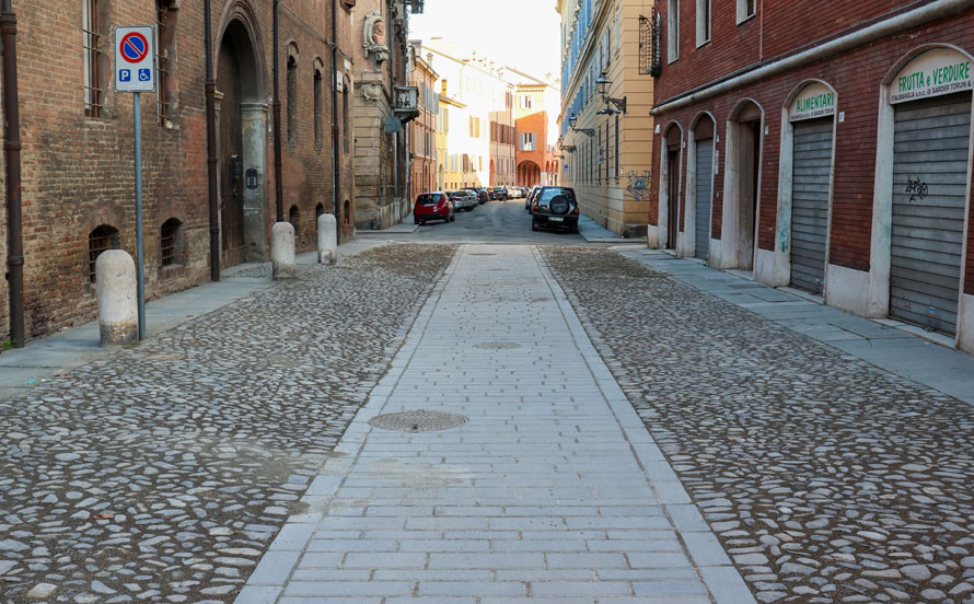 Il rifacimento, che ha coinvolto il tratto tra via Degli Adelardi (eccetto l'incrocio) e via Stella, è stato avviato a settembre e ha visto l’utilizzo di lastre di selce e ciottoli. Questa parte del progetto si inserisce in un programma di riqualificazione delle pavimentazioni storiche, che ha già riguardato il tratto tra via Stella e piazzale San Francesco.