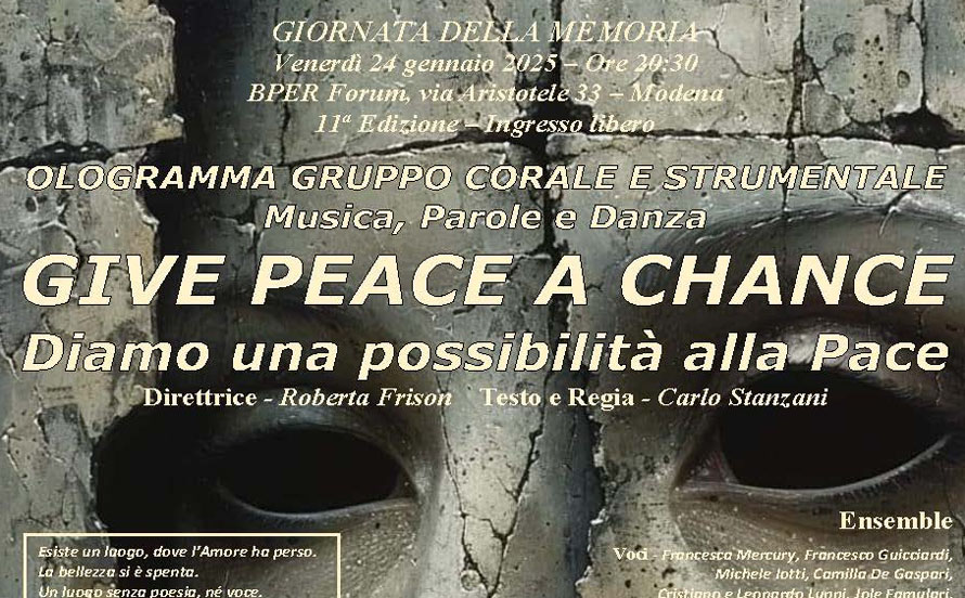 Il Gruppo corale e strumentale Ologramma in occasione della Giornata della Memoria propone il concerto dal titolo "Give peace a chance".