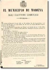 Il Municipio di Modena agli elettori del Comune, 1859