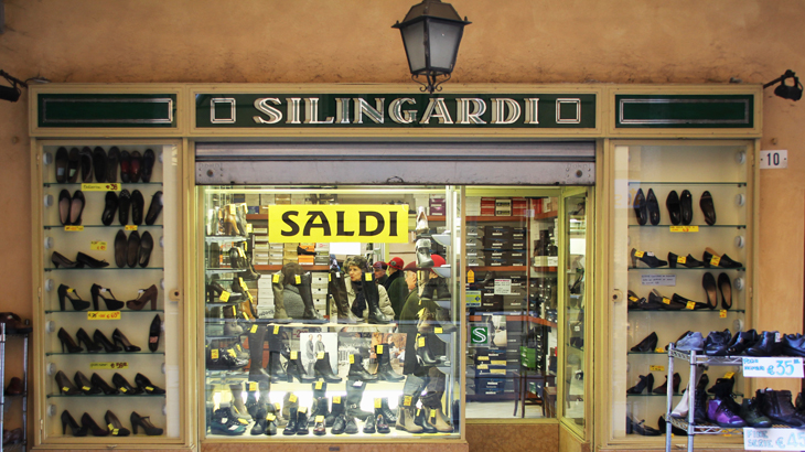 Dal 1925 in via Sant'Eufemia 10, la calzoleria Silingardi offre un vasto assortimento di calzature uomo e donna, La facciata del negozio e la vetrina esterna in marmo e ferro risalgono agli anni 20'.