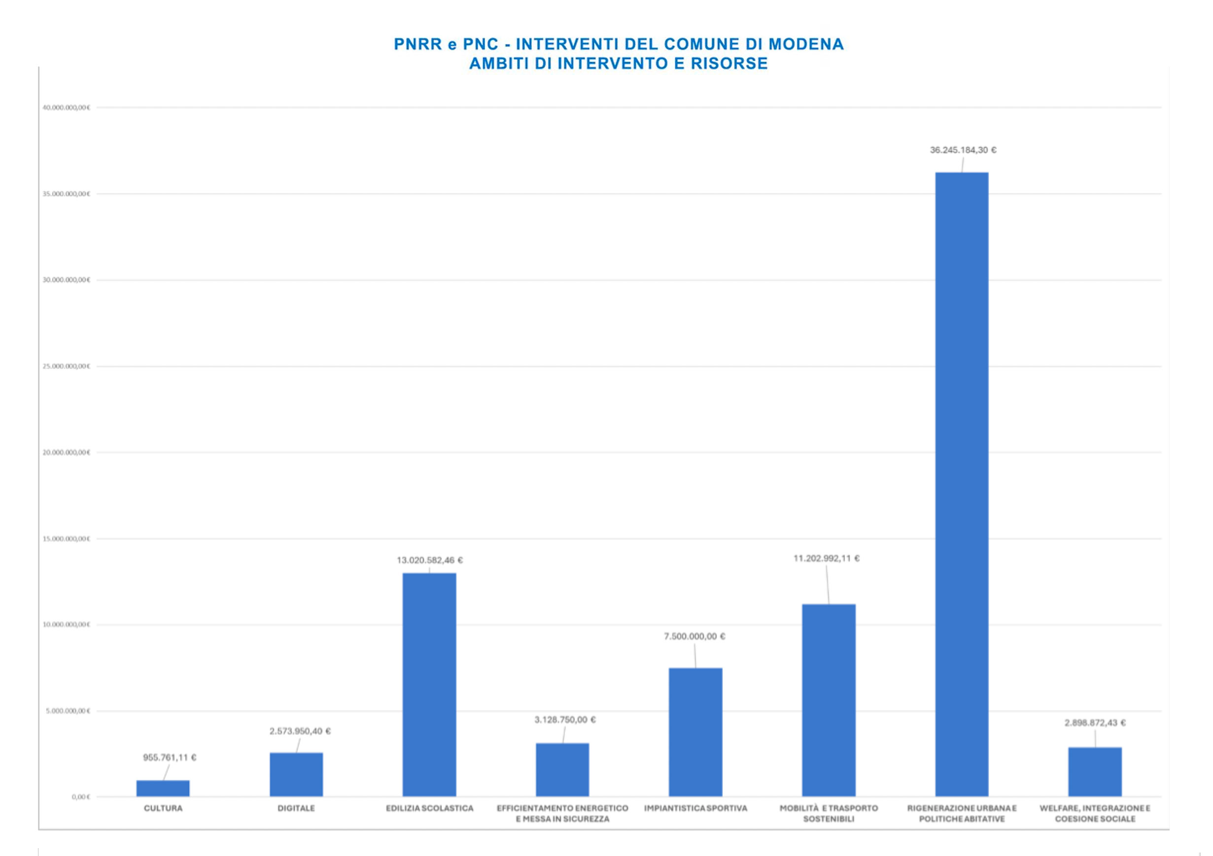 Il Comune di Modena ha candidato proposte progettuali a valere su 4 delle 6 Missioni del Piano, rispettivamente