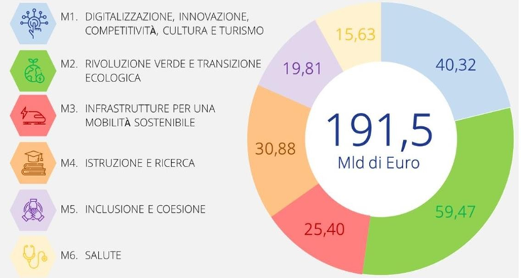 Il PIano Nazionale di Ripresa e Resilienza si articola in 6 missioni, declinate in 16 componenti, 63 riforme, 134 investimenti.