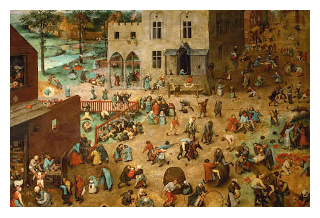 Nel dipinto sono raccontati circa ottanta tra giochi e giocattoli, compiuti da bambini nel medioevo. Fino all’inizio del secolo scorso la maggior parte dei bambini si costruiva i propri giocattoli, utilizzando gli scarti del mondo degli adulti, oppure giocava senza. Il laboratorio di costruzione permette ai partecipanti di sperimentare la propria creatività, utilizzare il prodotto del proprio lavoro, condividere progetti comuni, socializzare. Che giocattoli è possibile costruire? Dai giochi che ci propone il quadro di Bruegel, (burattini, percorsi per biglie, trottole, bambole, ruzzola, strumentini musicali, cerbottane, lippa, fucilini ad elastico, trampoli, mulinelli, cerchi, birilli, e tanti altri ancora), a giochi provenienti da tutto il mondo (aquiloni, yo-yo, mancala Africa, pachisi, piastrella, go, tangram, yotè Africa, peteca Brasile, Piaji CINA, ecc ).