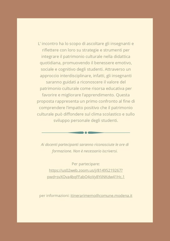 Ai docenti partecipanti saranno riconosciute le ore diformazione. Non è necessario iscriversi.