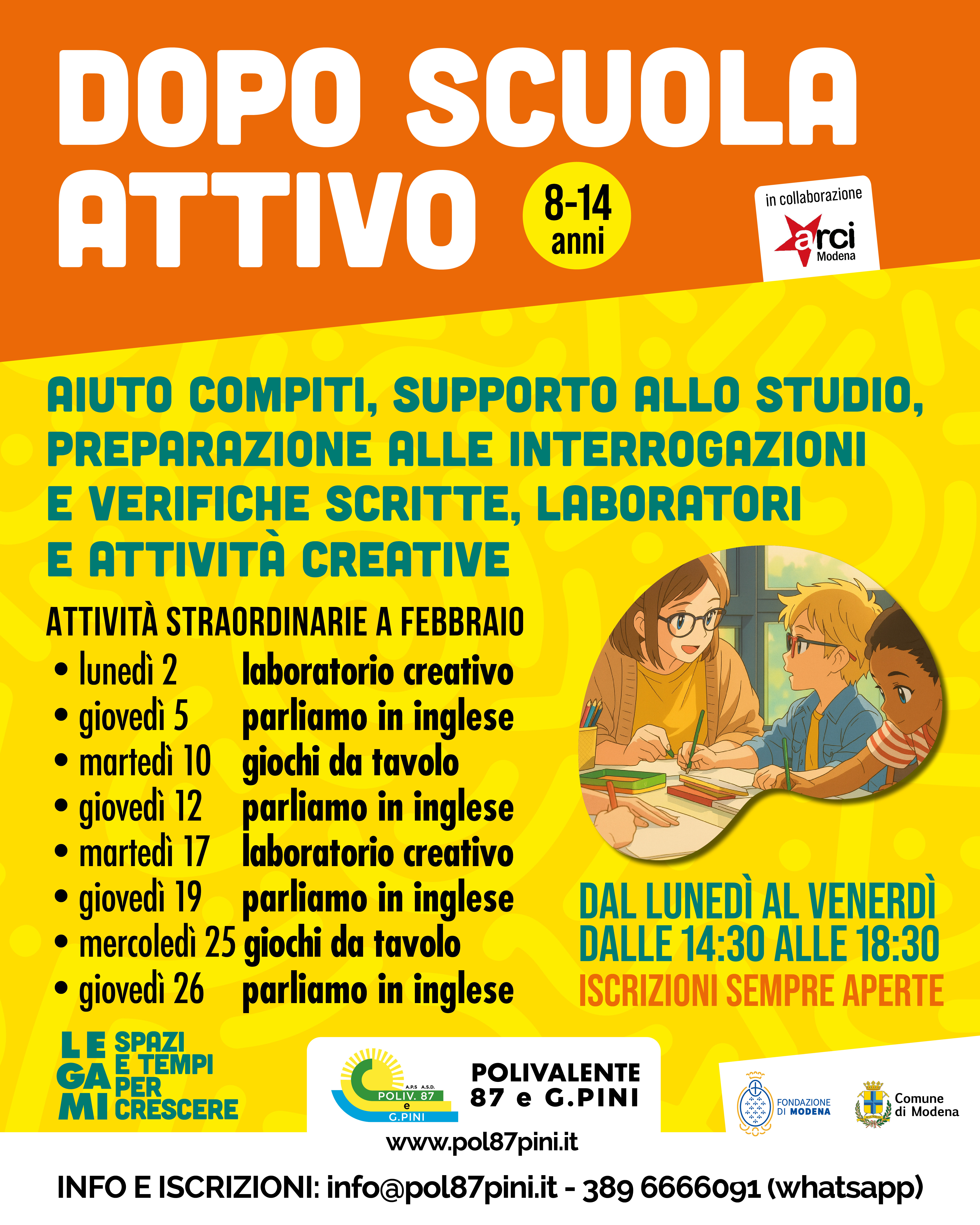 Ogni mese le famiglie potranno trovare il programma dei laboratori e delle attività sul sito della Pol87 e sui canali social: