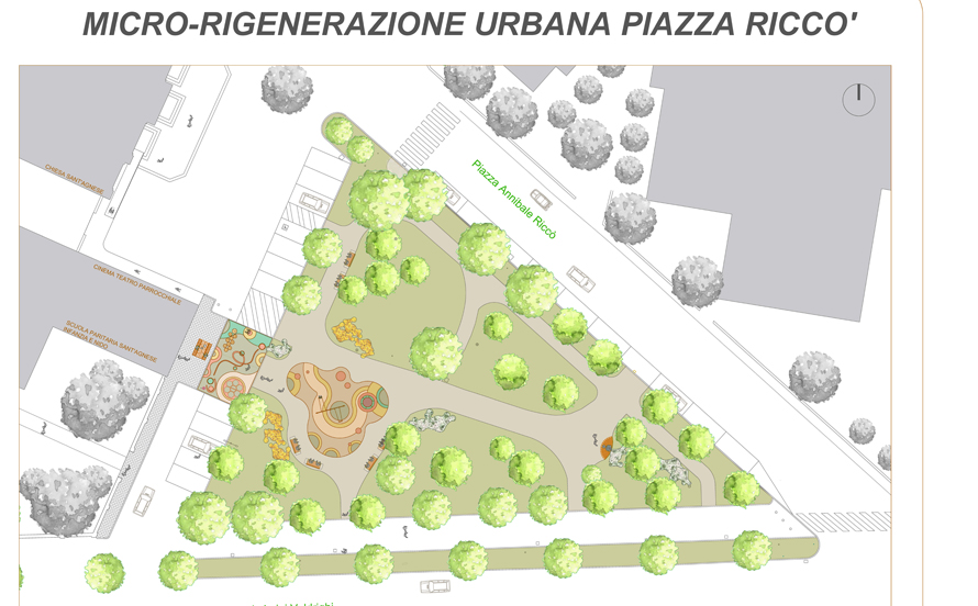 Il progetto di restyling prevede inoltre la desigillazione dell'area, la sistemazione del verde, una nuova illuminazione a led, la ridefinizione degli spazi e dei percorsi, la creazione di due nuove aree gioco al posto di quella esistente, più vicine alla chiesa, destinate a diventare importanti punti di incontro per le famiglie.