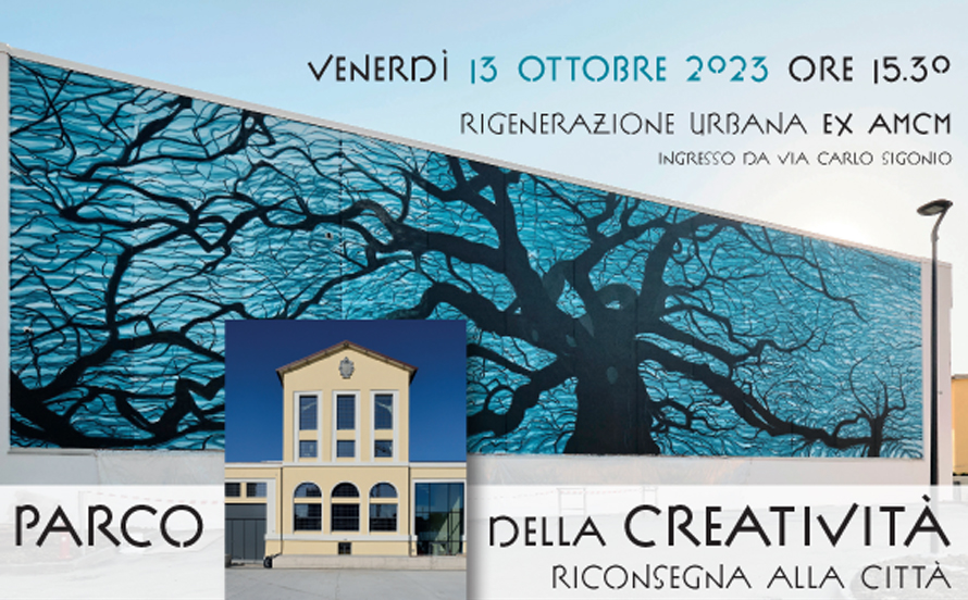 Con l'inaugurazione del Parco della Creatività termina l'intervento di rigenerazione dell’area dell’ex Amcm di Modena avviato negli anni scorsi con la riqualificazione dell’edificio industriale dove oggi si trova il Laboratorio Aperto e proseguito con la realizzazione della prima sala del Nuovo Teatro delle Passioni e con le altre opere pubbliche. In particolare, si tratta della piazza pedonale e ciclabile rialzata, sotto cui è a disposizione il nuovo parcheggio seminterrato, e della nuova palestra Sigonio, ora caratterizzata dal suggestivo “albero” dell’artista Andrea Chiesi sulla parete rivolta su via Sigonio.