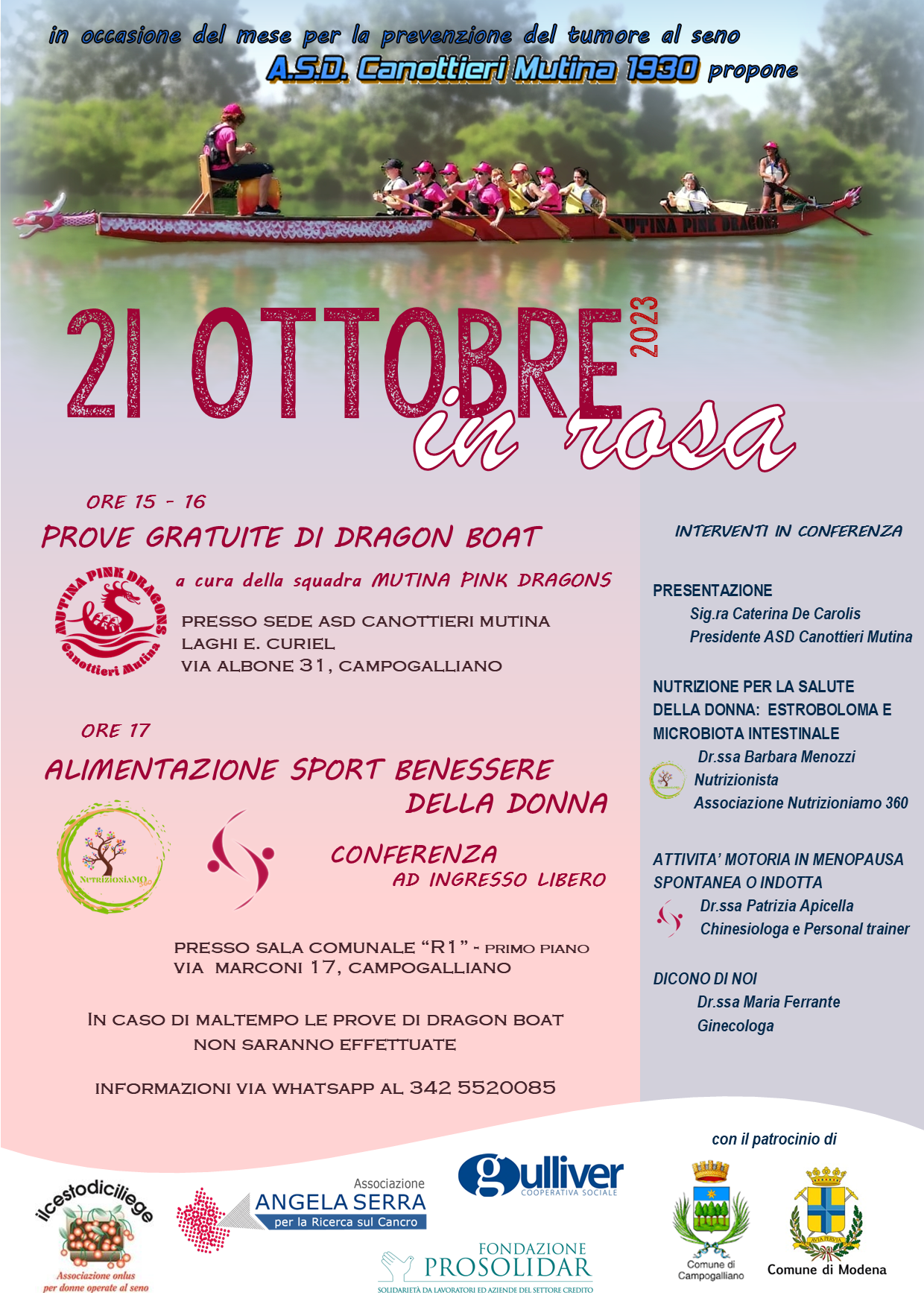 A Modena sono previsti eventi il 21 ottobre, organizzati dall'associazione "A.S.D. Canottieri Mutina 1930 - Squadra Mutina Pink Dragons"