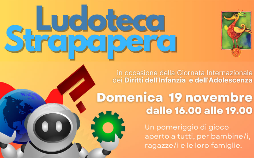 Un pomeriggio di gioco aperto a tutti, per bambine/i, ragazze/i e le loro famiglie domenica 19 novembre dalle 16.00 alle 19.00.