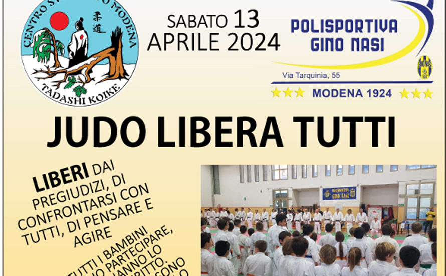 Sabato 13 aprile presso la Polisportiva Gino Nasi a Modena, in via Tarquinia 55, si terrà un bell'evento di gara di judo dedicato ai bambini, "Judo libera tutti!"