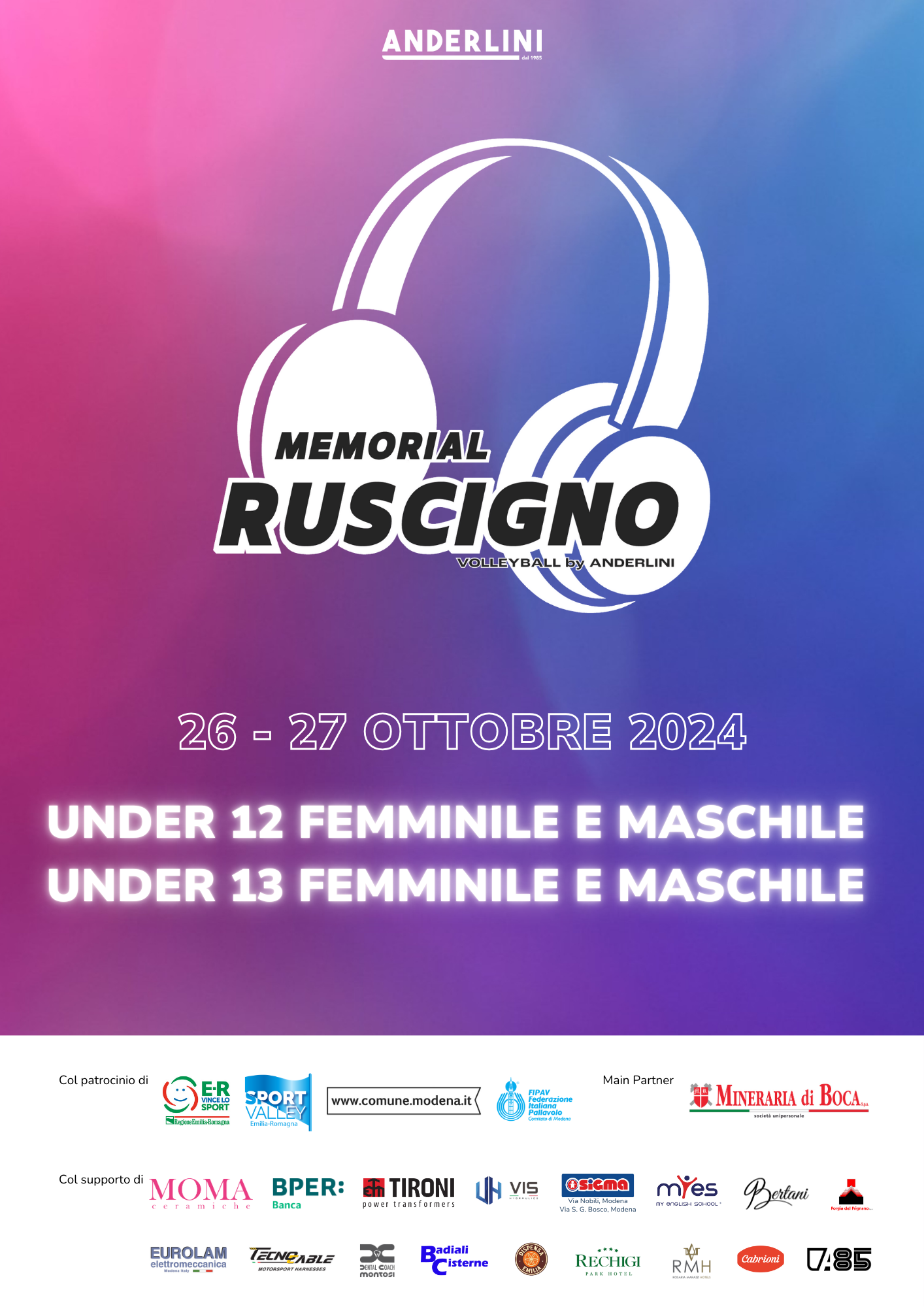 Sabato 26 e domenica 27 ottobre 2024 si terrà il Memorial Ruscigno, il torneo di volley dedicato alle categorie Under 12 e Under 13 Maschile e Femminile che continua la tradizione della Serra Cup, giunta alla sua decima edizione. Si giocherà a Modena in varie palestre della città.