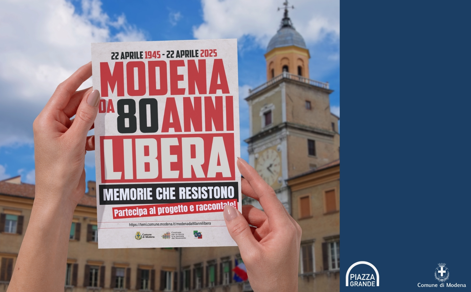 Il Comune di Modena, in occasione dell’80° anniversario della Liberazione, promuove il progetto partecipativo “Modena da 80 anni libera. Memorie che resistono” con l’obiettivo di raccogliere, conservare e valorizzare le memorie locali legate alla liberazione dall’occupazione nazista e dal fascismo. Il progetto prevede la creazione di un archivio digitale di ricordi e testimonianze che confluiranno in un’installazione multimediale e in un podcast dedicato.