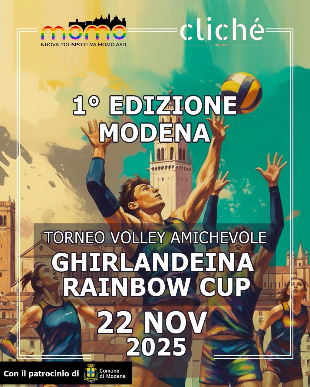 Per informazioni ed iscrizioni: https://www.clichemodena.it/eventi/ghirlandeina-rainbow-cup-2025-il-torneo-di-volley-di-cliche-e-momo-volley/
