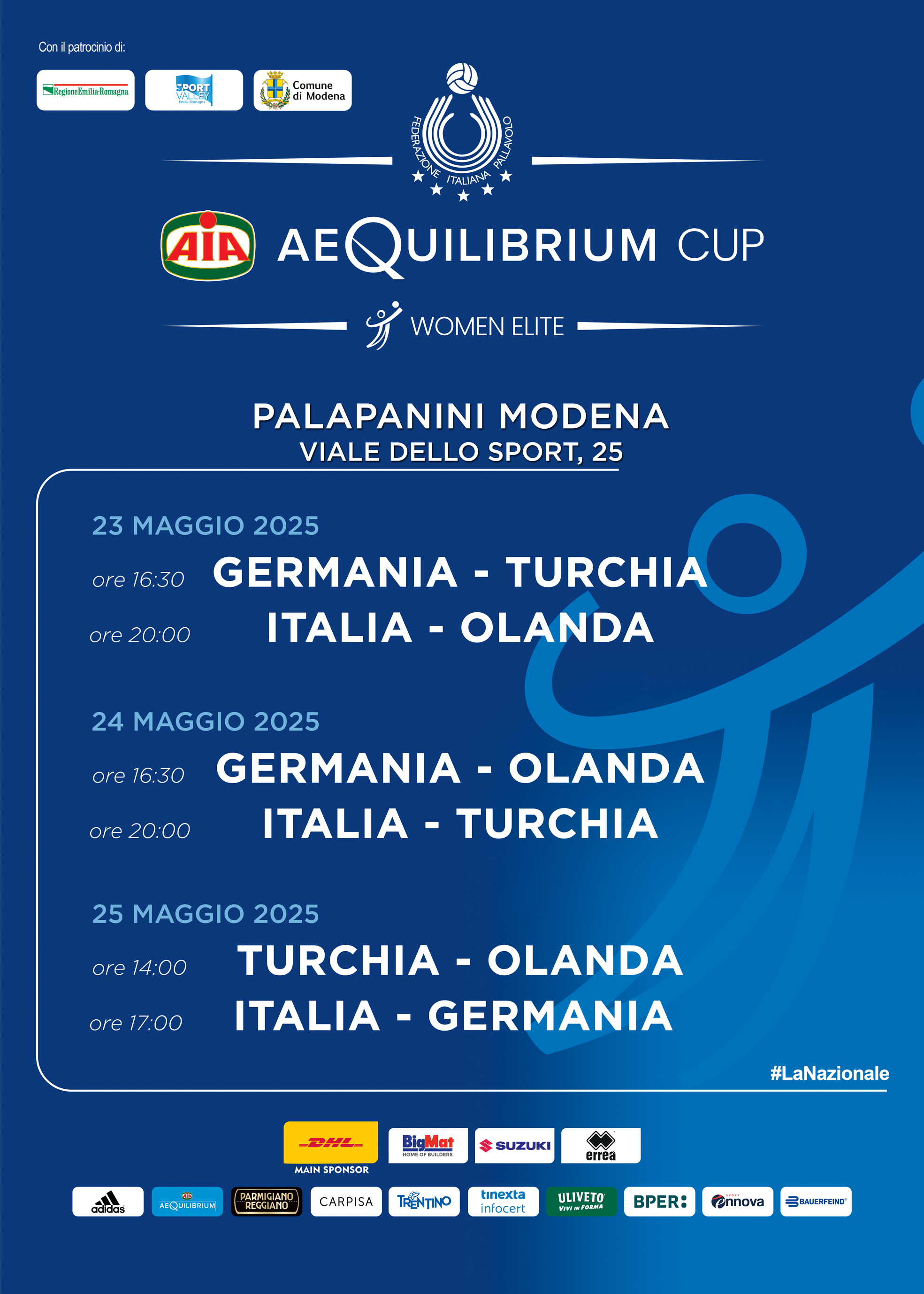 La nazionale italiana pallavolo femminile, vincitrice della medaglia d'Oro a Parigi 2024 e guidata dal ct Julio Velasco, sarà impegnata nel Torneo Internazionale AIA AeQuilibriumCup Women Elite.