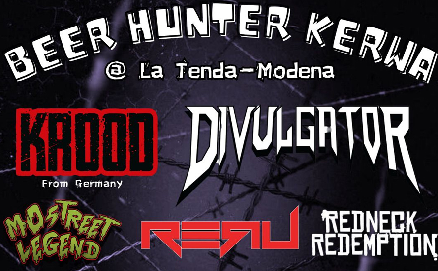 Sabato 12 ottobre, sul palco della tenda: i concerti di Divulgator, Krood, Mostreet Legend, Reru & Redneck Redemption all’interno della serata “Beer Hunter Kerwa”.