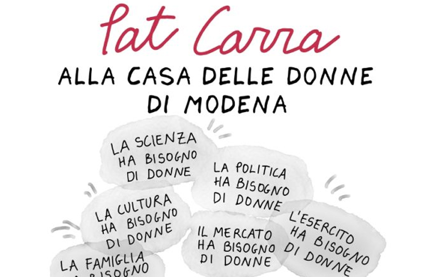 In occasione del 25 novembre – Giornata internazionale per l’eliminazione della violenza contro le donne, dall’8 novembre all’8 dicembre 2024 presso la Sala Renata Bergonzoni -Casa delle Donne di Modena (str. Vaciglio nord, 6) sarà allestita la mostra Pat Carra alla Casa delle Donne di Modena promossa da Casa delle Donne di Modena.