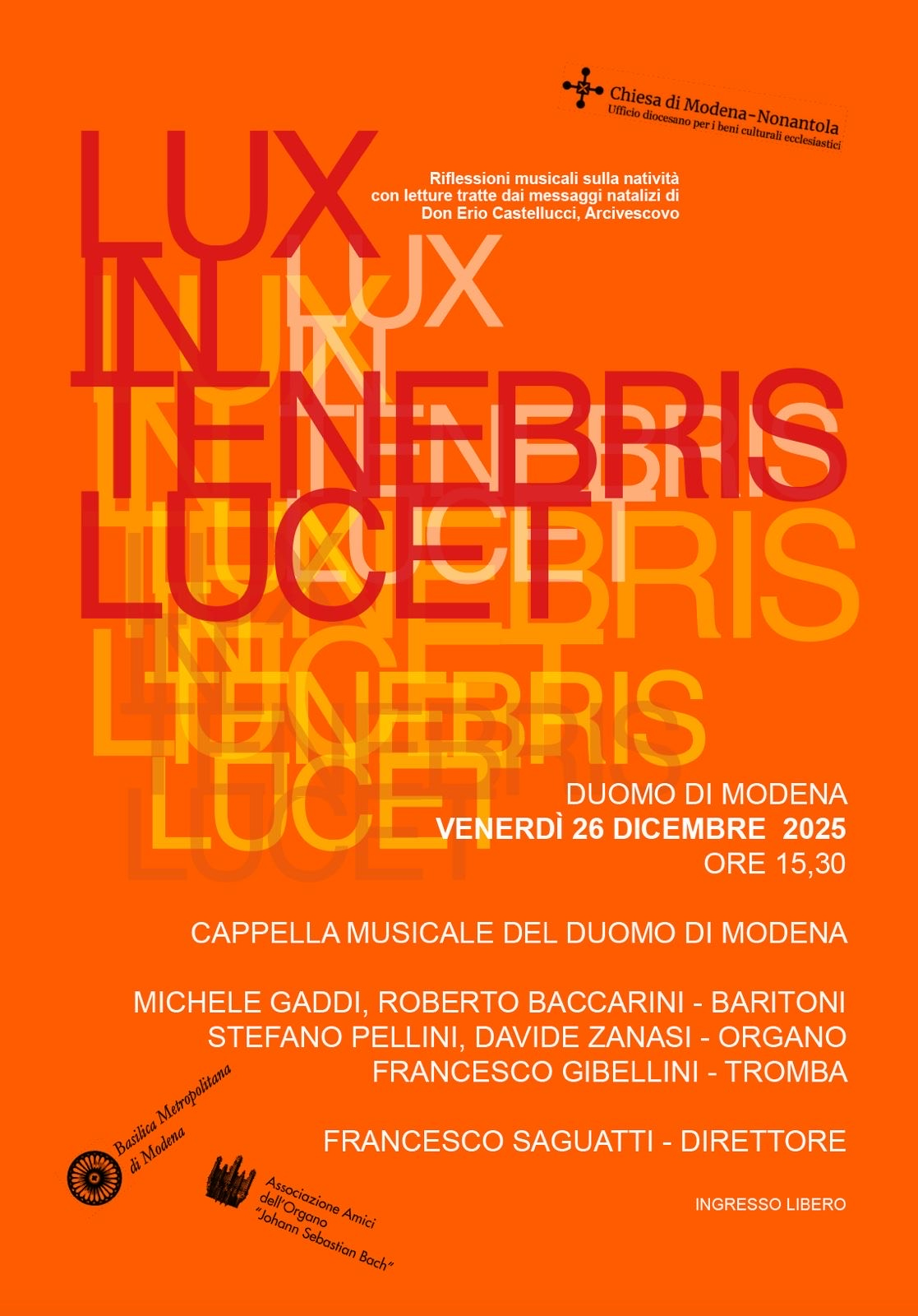 Nel giorno di Santo Stefano, venerdì 26 dicembre alle ore 15:30, si terrà l'attesissimo concerto della Cappella Musicale del Duomo di Modena con: