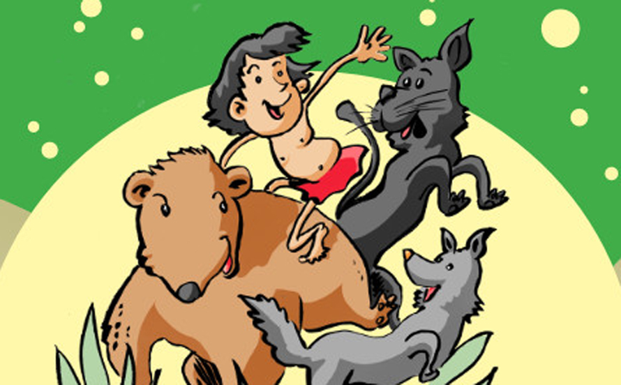 La maggior parte dei personaggi sono animali come la tigre Shere Khan e l’orso Baloo, anche se il personaggio principale è il ragazzo o “cucciolo d’uomo” Mowgli, che viene allevato nella giungla dai lupi.
