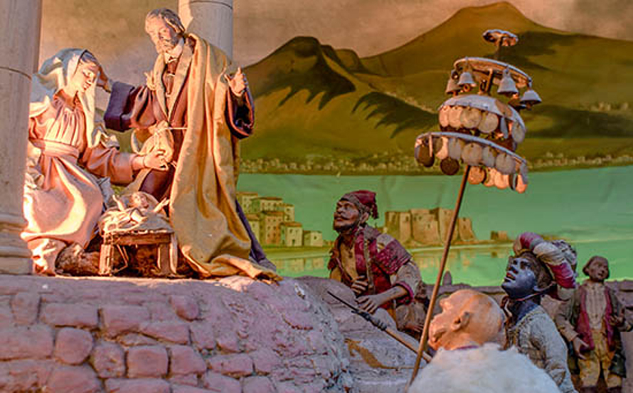 Il nucleo più prezioso attorno a cui si è formato il Museo è costituito da una serie di statuette napoletane risalenti alla fine del Settecento, che secondo la tradizione appartennero al grande presepe dei duchi d’Este. Tra i pezzi che attirano maggiormente la curiosità dei visitatori spicca una statuina “smontata”, esempio raffinato della tecnica presepiale dell’epoca: busto e testa in terracotta, mani e piedi in legno, collegati da fil di ferro e stoppa e rivestiti con stoffe che riproducono fedelmente gli antichi costumi.